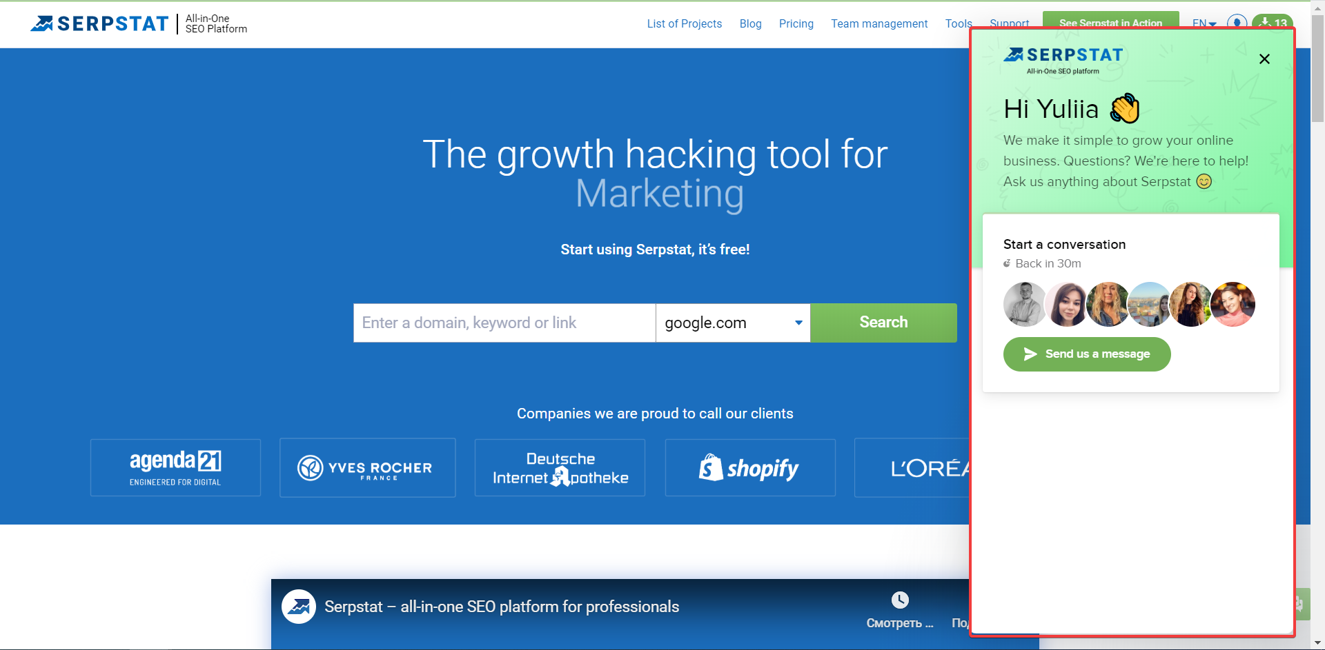 These may include a personal demonstration, a trial period, comprehensive training articles & webinar recordings, and custom advice from a Serpstat specialist. It is our goal to make you feel comfortable while using Serpstat.