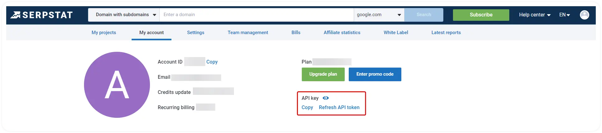 Most tools require an API token to generate content. You can find your API token in Profile: