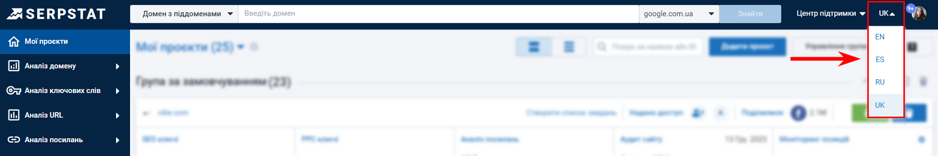 Ми розширили мовну розмітку для даних за ключовими словами. Окрім баз UA та US, колонка з мовою запиту тепер доступна для Google Канади, Франції, Великої Британії та Німеччини — як у розділі Аналіз ключових слів, так і в Аналізі сайту → Ключові слова.