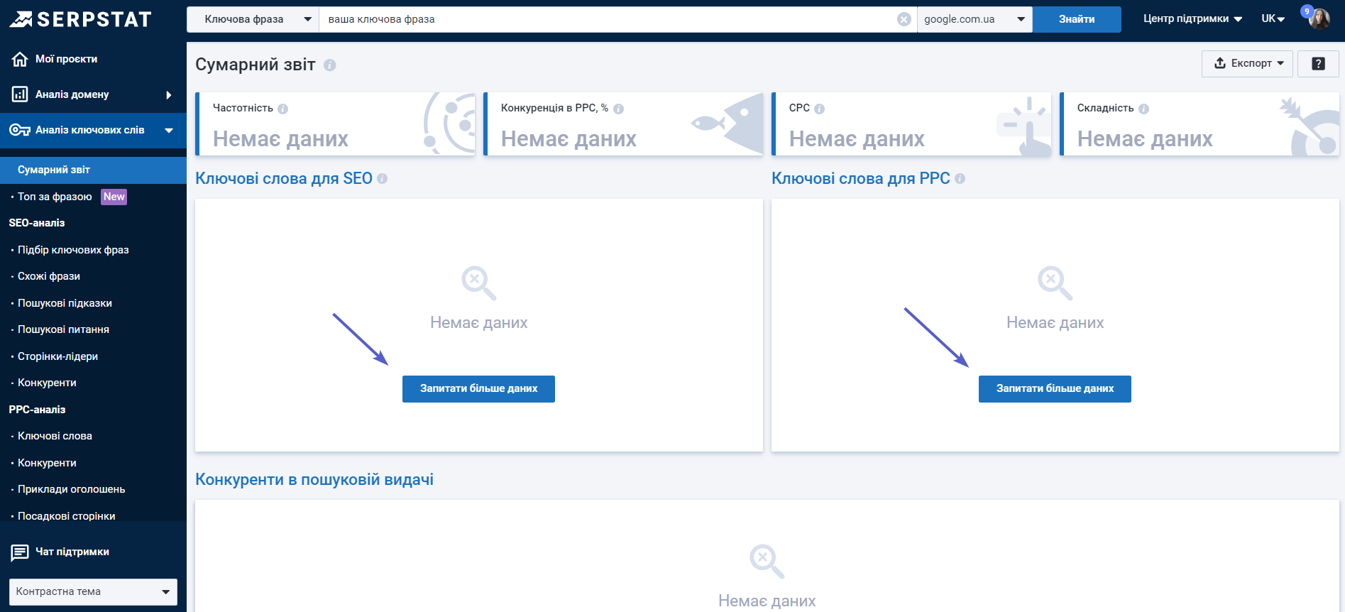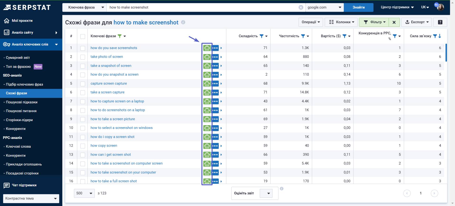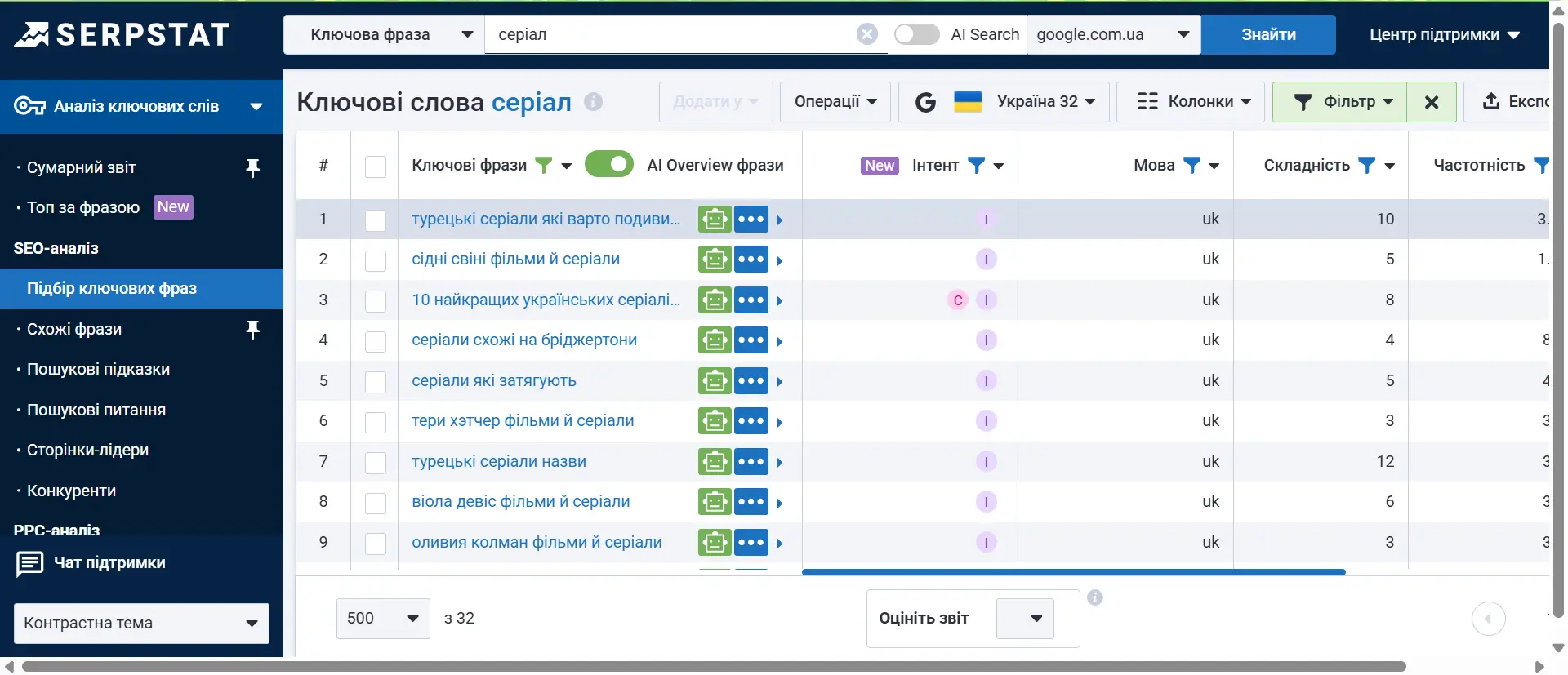 Пошукова аналітика: НовеВідтепер у звіті "Підбір ключових фраз" доступна функція AI Search. ШІ тепер знаходить не лише точні відповідності, а й усі ключі, схожі за сенсом, навіть коли вони сформульовані зовсім по-іншому. Це особливо корисно для нових тематик, long-tail запитів та нішевих фраз, де класичні методи дають мало результатів. Функція доступна для всіх користувачів.