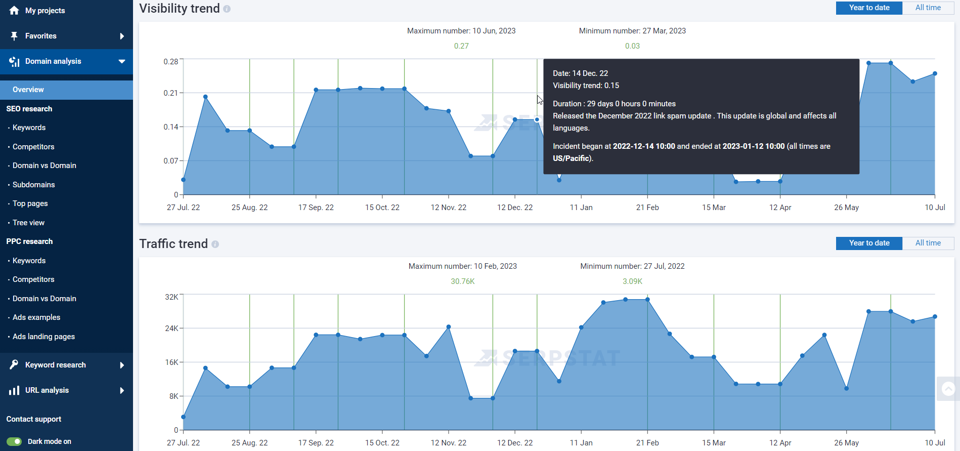 Analytics: UpdateWe’ve upgraded how organic traffic is calculated in Serpstat. Using machine learning, traffic estimates are now closer to real clicks from Google Search Console.