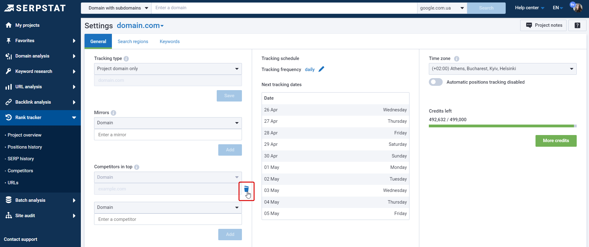 In Rank tracker projects, the date for which domain positions are tracked has appeared opposite keywords.