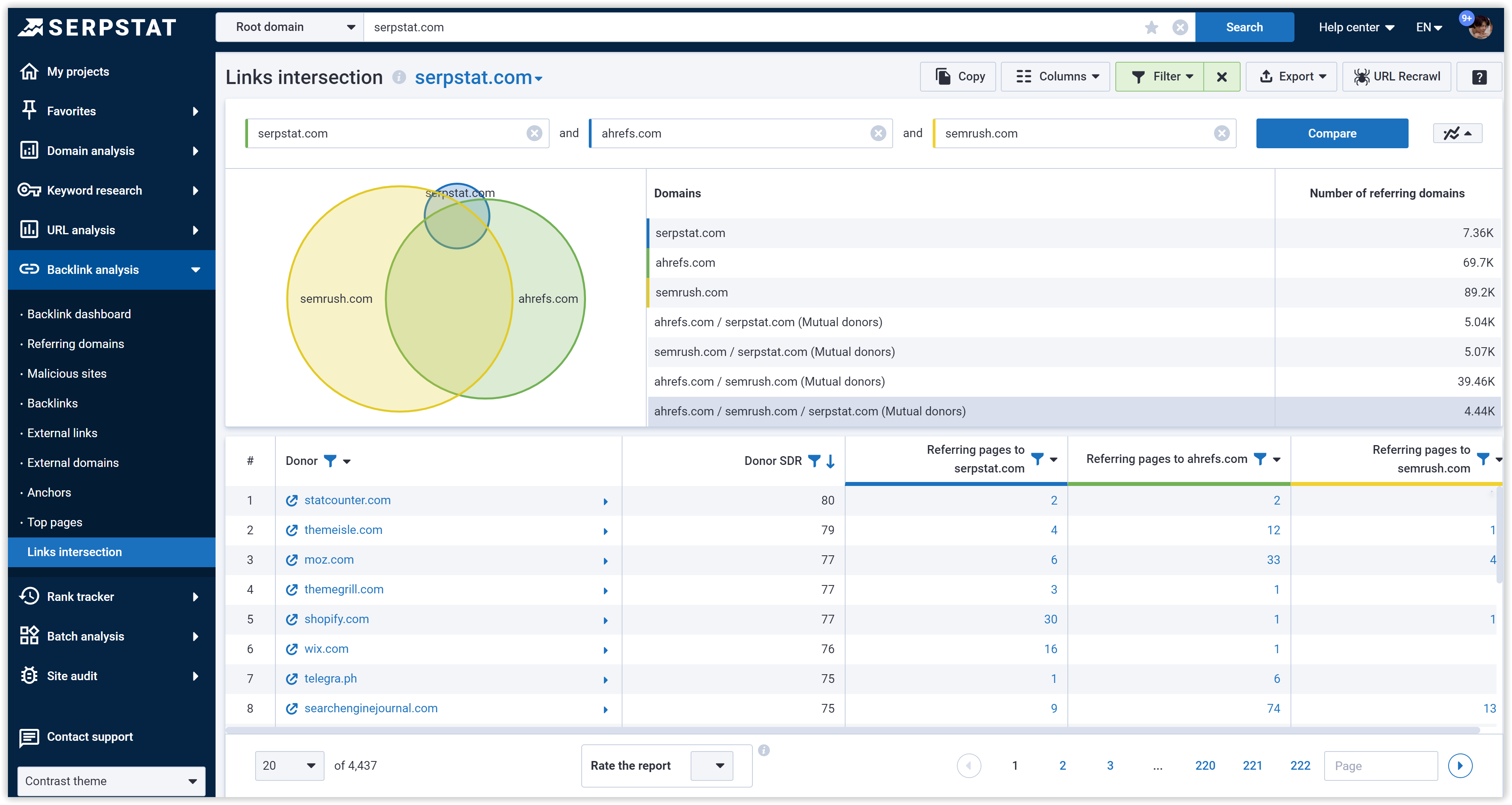 - Unique donor domains Serpstat.