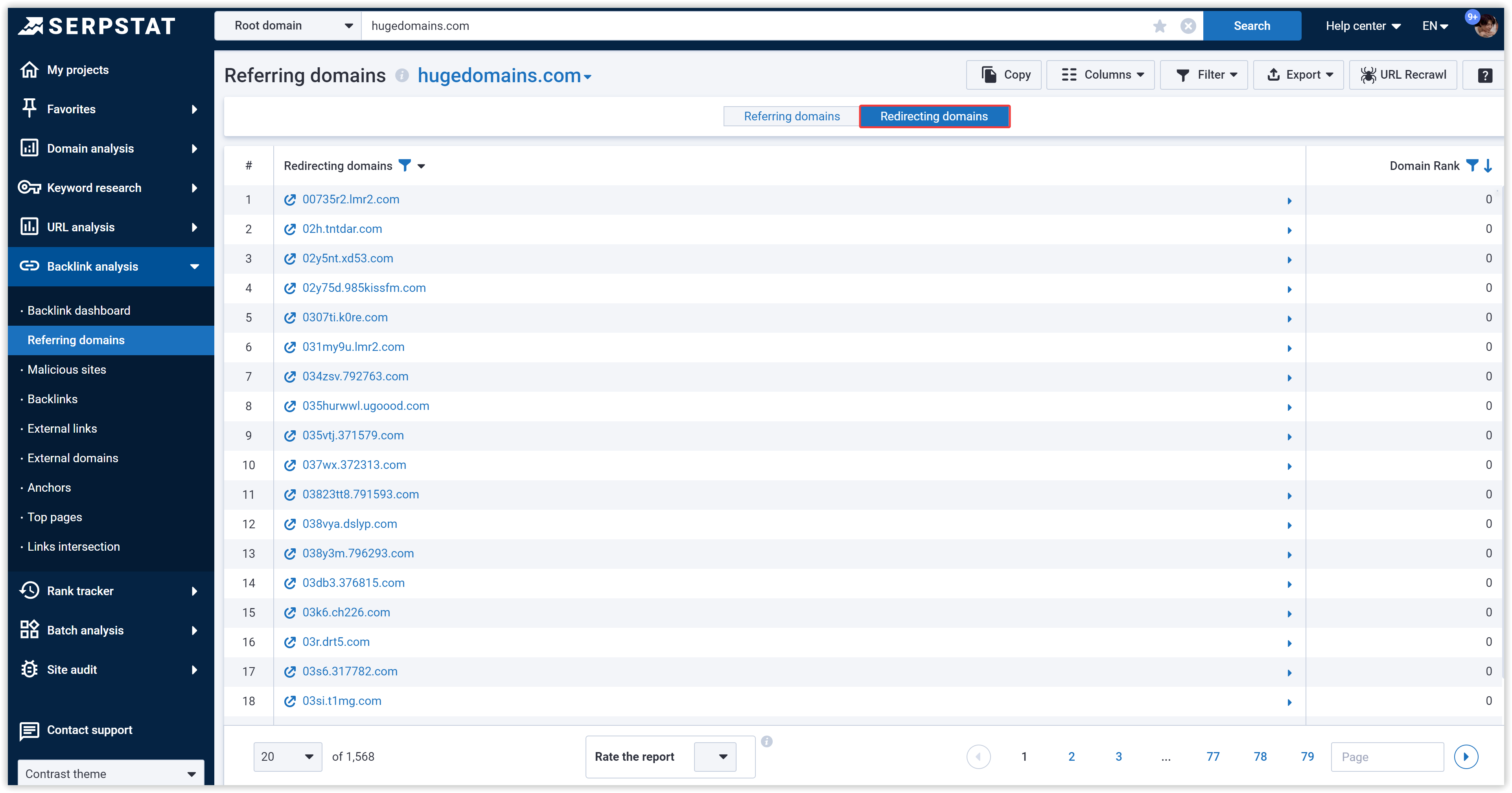 Serpstat's solution is pretty good so far in terms of convenience (it has an API function for analyzing backlinks and a URL rescan tool). When you work with massive data, it saves a lot of time.