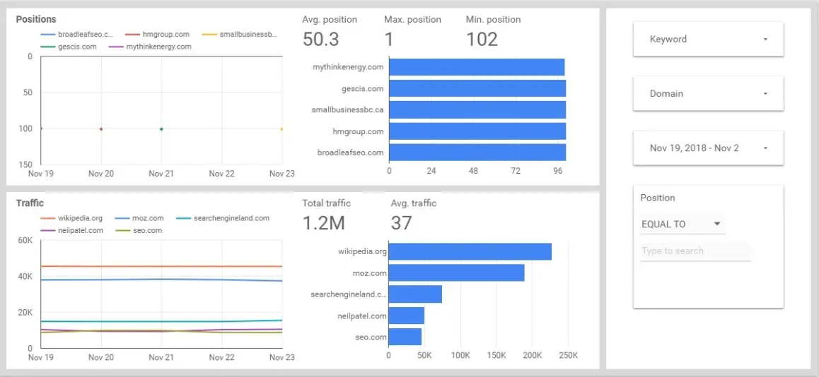 - Siga la dinámica de las posiciones por palabras clave y determine cómo puede superar a sus competidores con un esfuerzo mínimo