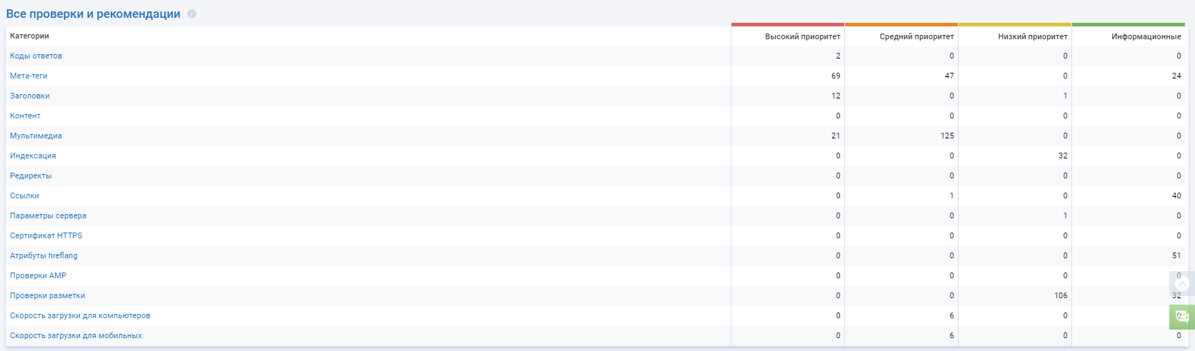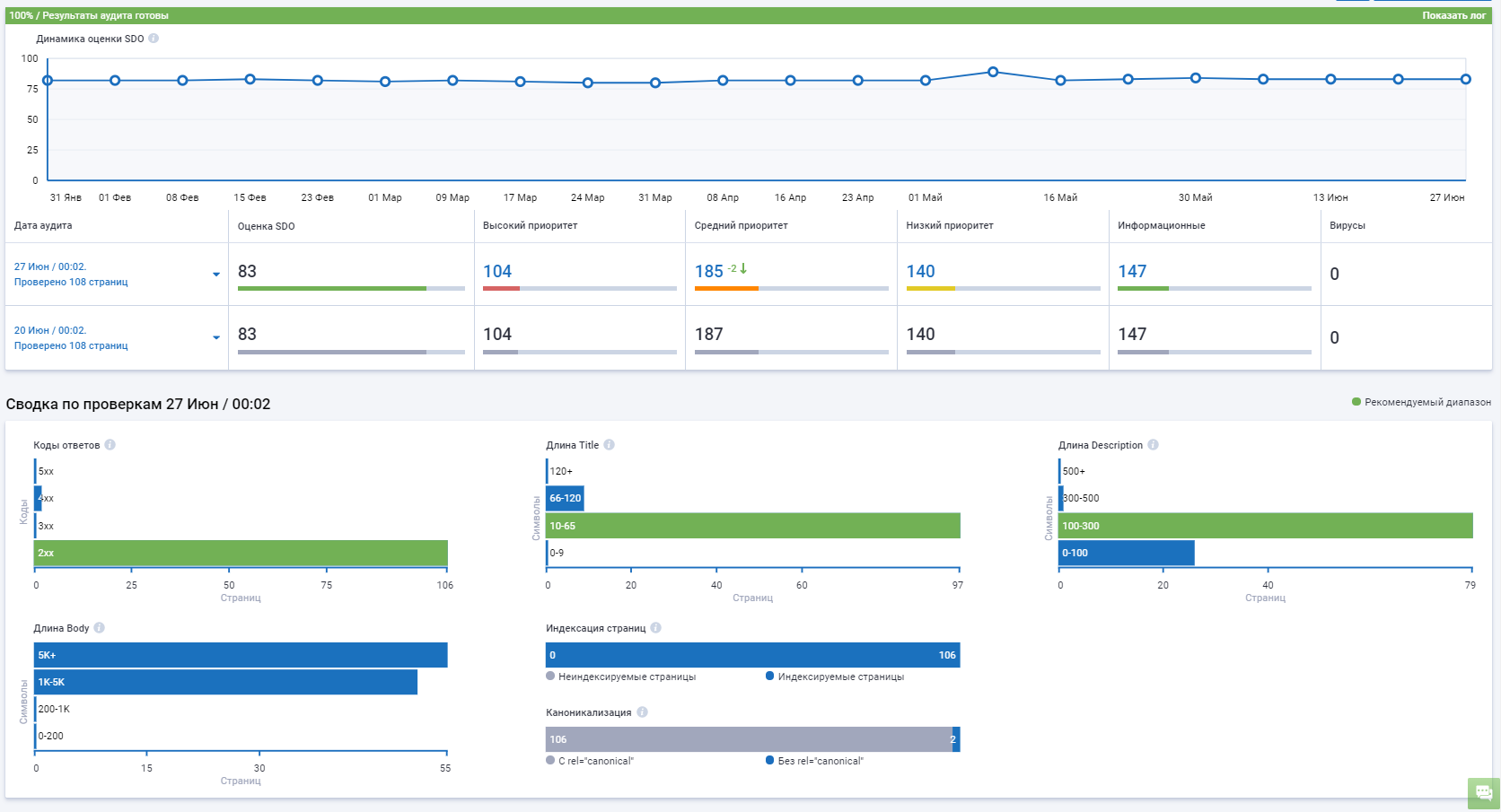 С помощью инструмента «Аудит сайта» мы провели полную проверку ресурса на наличие технических ошибок.