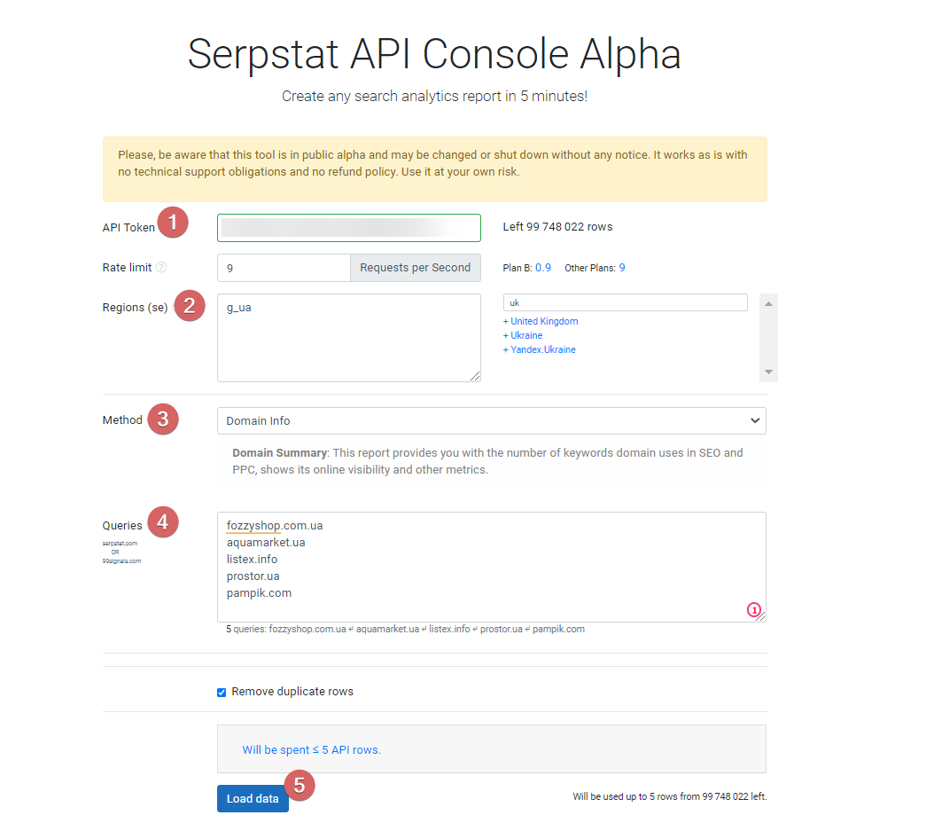 Для работы с Serpstat API необязательно иметь навыки программирования и оно доступно для пользователя на любом тарифном плане ($69 — API-лимитов в месяц 100 000). Если у вас нет необходимости интегрировать данные Serpstat в другие инструменты, получать ответ из API в формате JSON, но вы хотите использовать данный инструмент для ускорения работы — у вас есть три варианта: