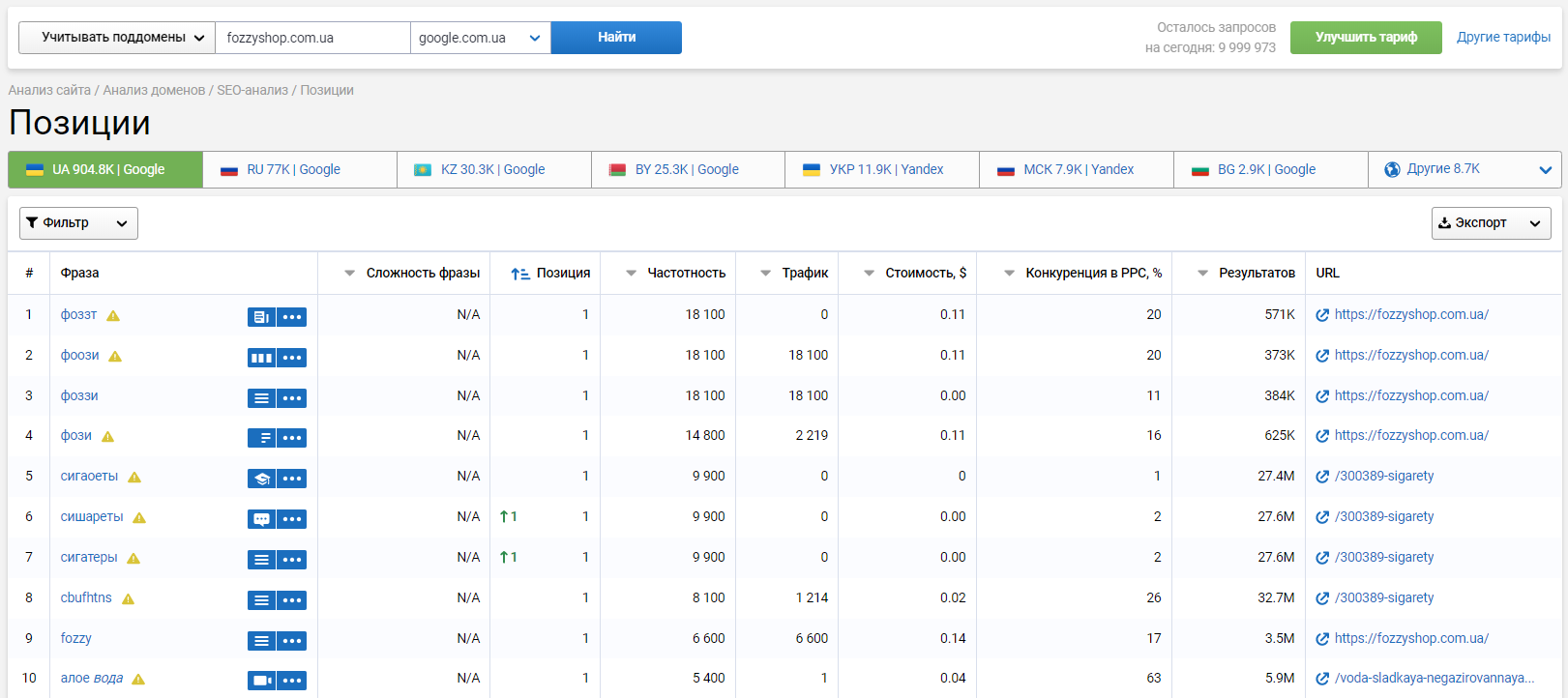 Отслеживайте изменение ранжирования запросов используя мониторинг позиций ключей