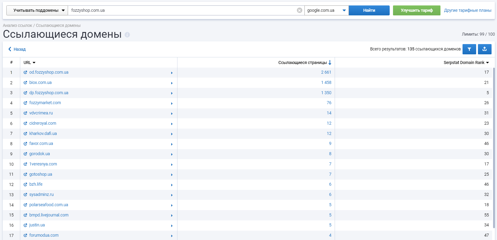 Далее выгрузили списки ссылающихся доменов, проанализировали площадки и нашли несколько хороших ссылочных доноров. Исходя из полученных данных проработали для себя стратегию ссылочного продвижения.