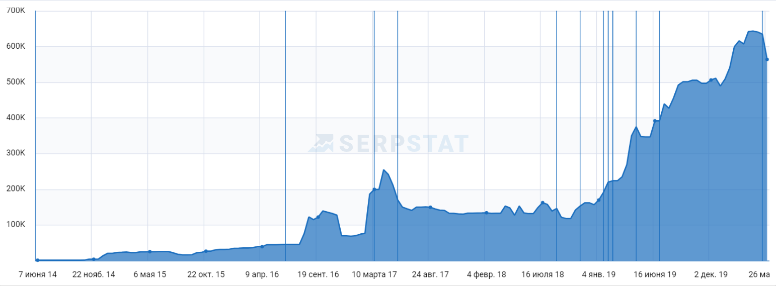 Динамика трафика из Google за 2014−2020:
