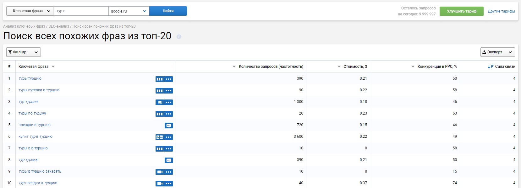 Находите ключевые фразы и площадки для обратных ссылок, анализируйте SEO-стратегии конкурентов, ежедневно отслеживайте позиции в выдаче, исправляйте SEO-ошибки и управляйте SEO-командами.