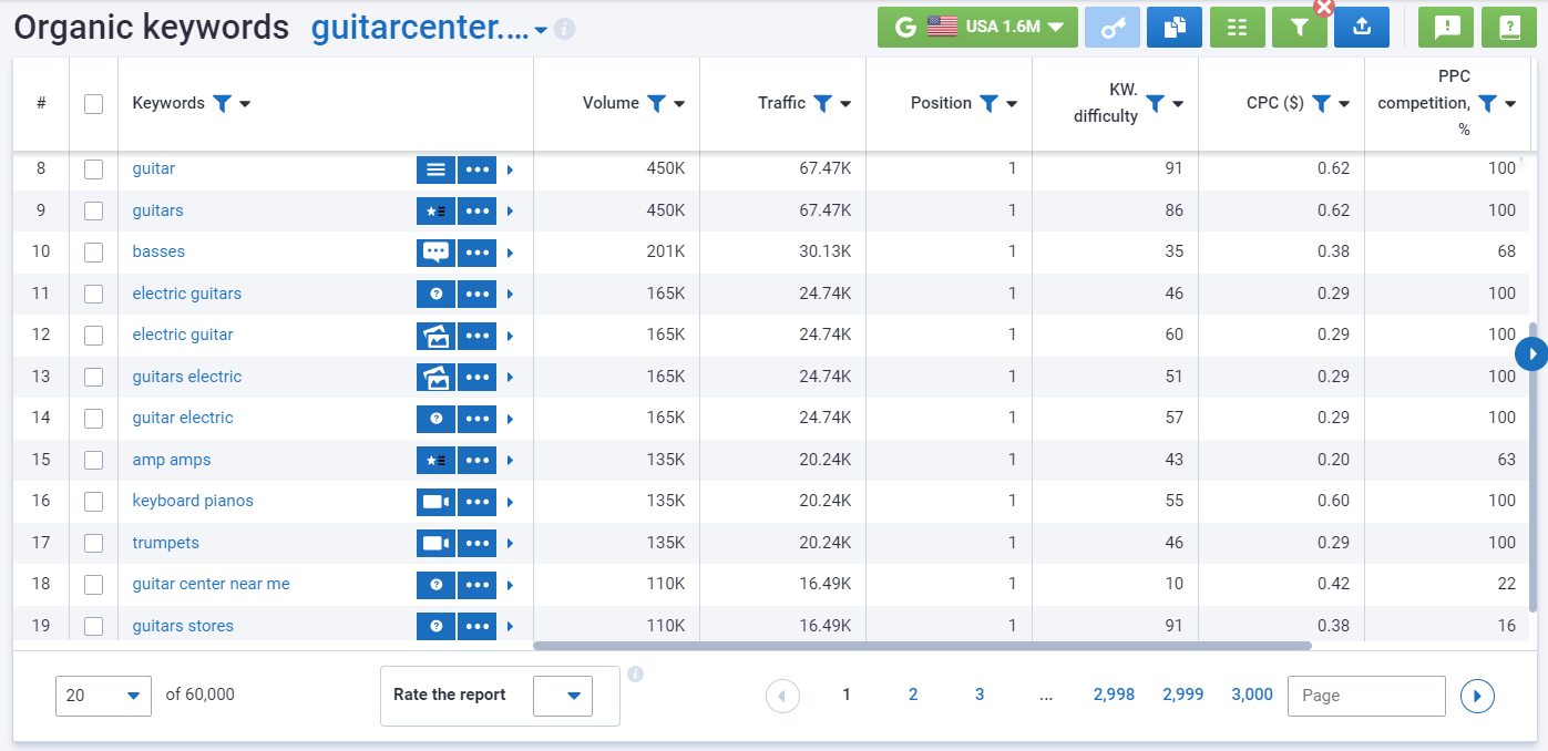 If necessary, you can sort and filter the keywords in all columns.