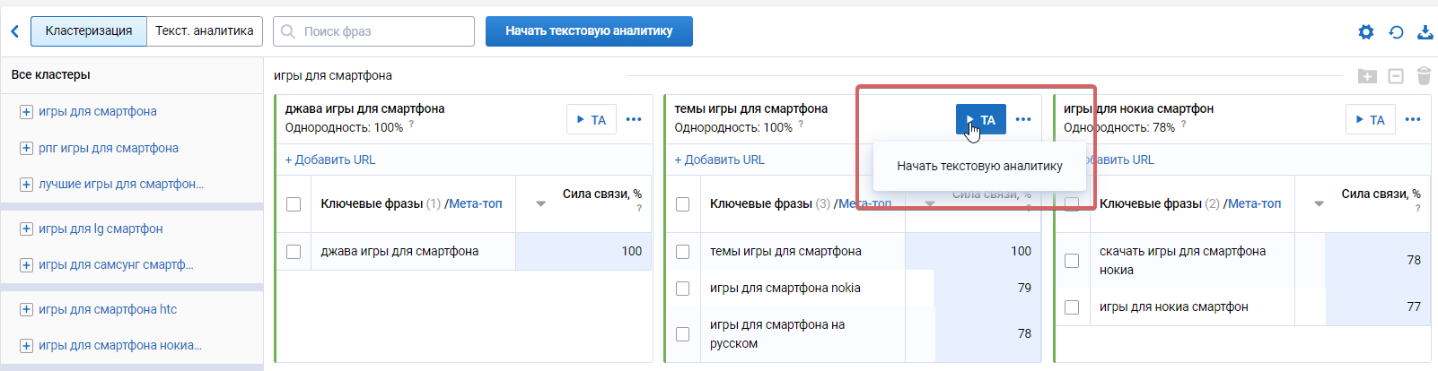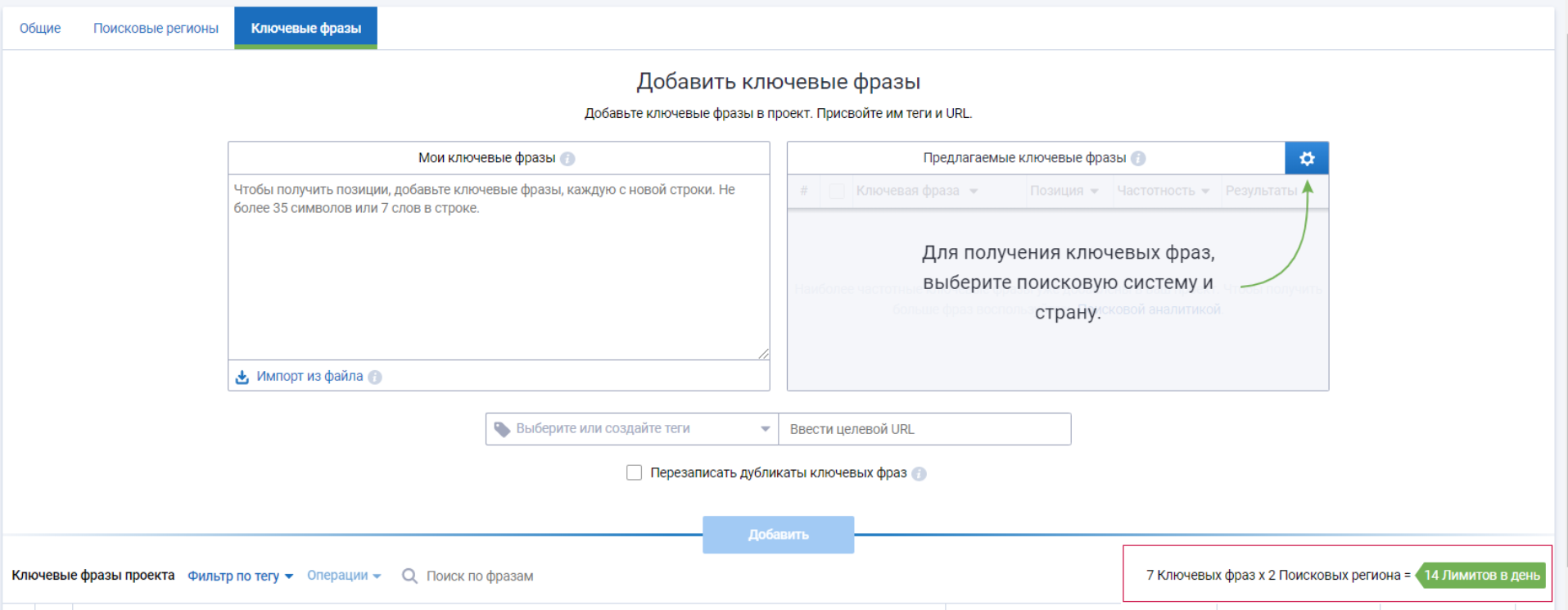 Обратите внимание: лимиты для Пакетного анализа ключевых фраз, Пакетного анализа домена, Кластеризации, Текстовой аналитики и AI для контента общие.
