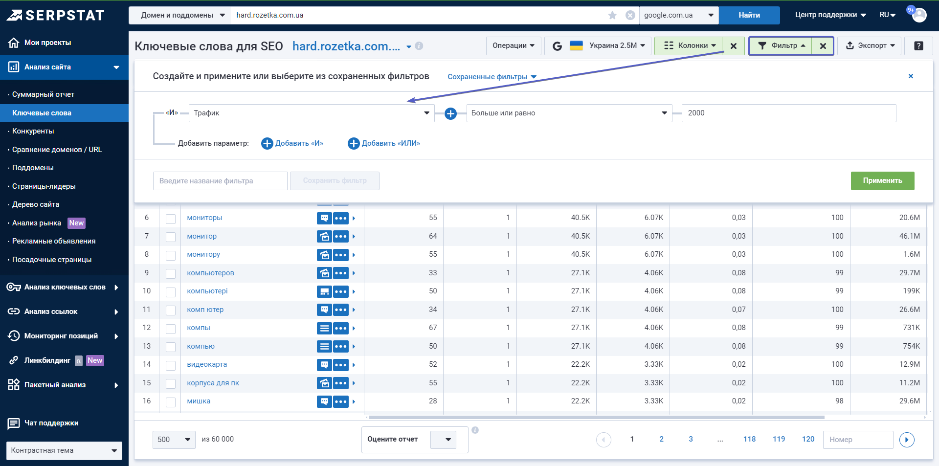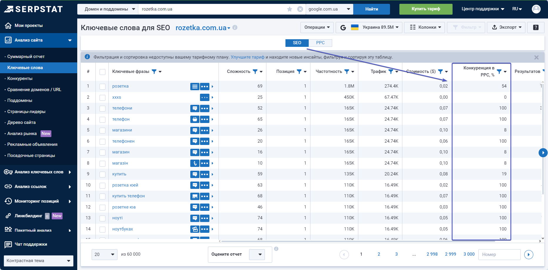1. Поиска эффективных ключевых фраз конкурентов в органическом и платном поиске, с целью их дальнейшего использования для оптимизации вашего сайта и рекламных кампаний.