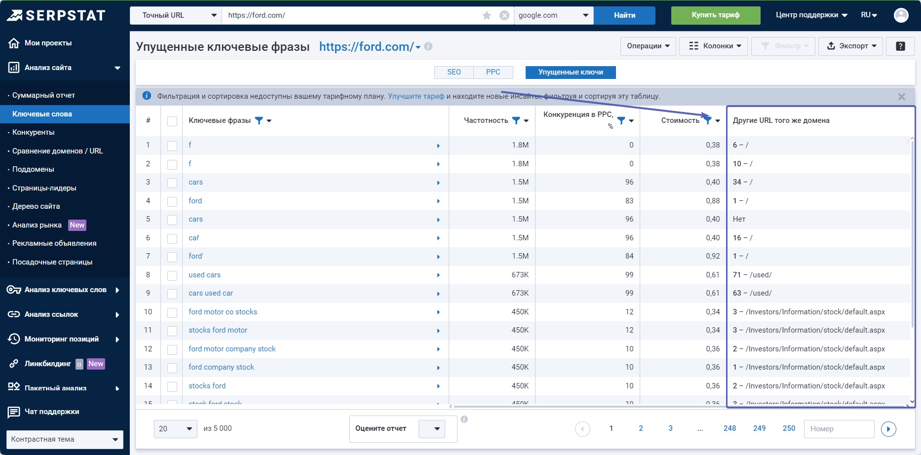 Экспорт доступен пользователям, имеющим платную подписку Serpstat.