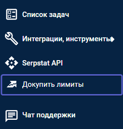 Пример: анализ 1 домена * 20 метрик (9 метрик для аналитики + 11 метрик для ссылок) по 1 базе = 20 лимитов.