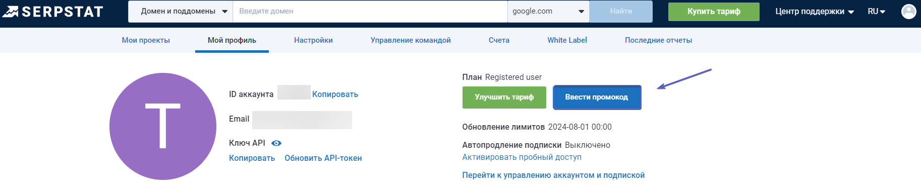 По всем вопросам пишите в наш чат или на support@serpstat.com.
