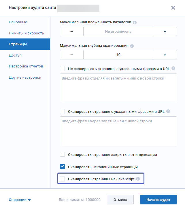Количество лимитов на перекраул — 500 URL в день. Лимиты не суммируются: в день — 500 URL, если их не использовать — они сгорают.