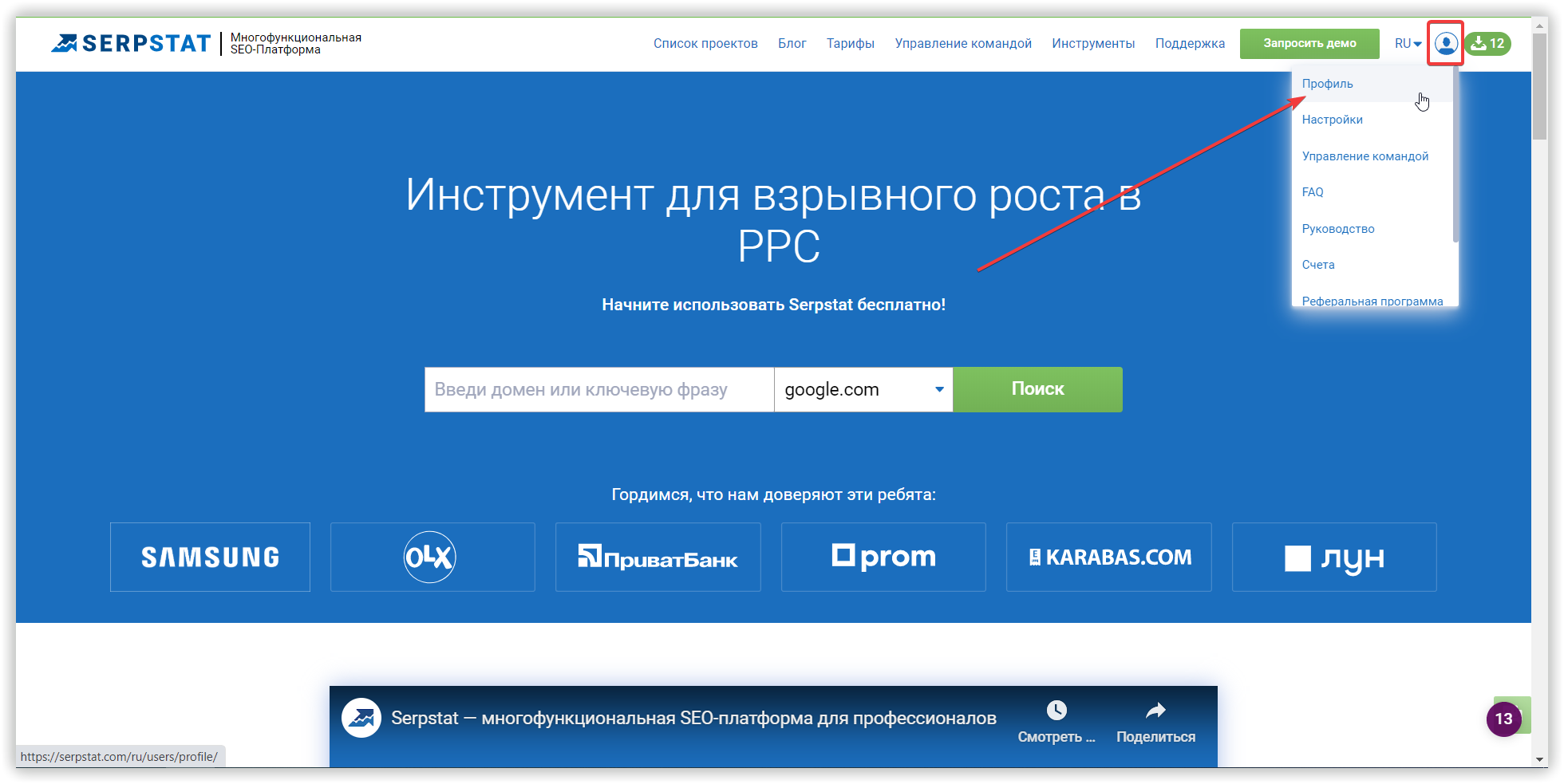Serpstat — это многофункциональная SEO-платформа, которая включает в себя Анализ сайта, Анализ ключевых фраз, Анализ ссылок, Мониторинг позиций, Аудит сайта, Кластеризация, Текстовая аналитика и другие инструменты.