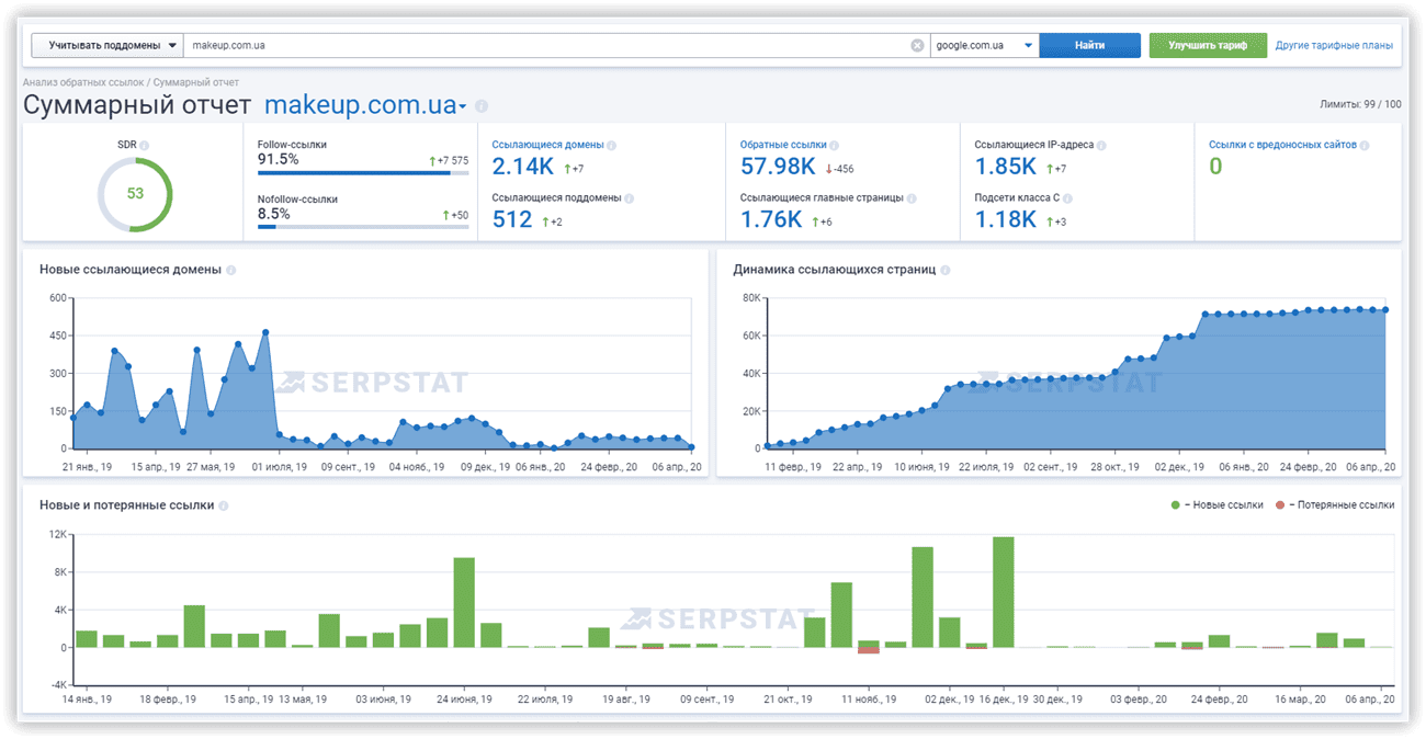 - Вносите изменения в ссылочный профиль и получайте свежий отчет с учетом недавних изменений.