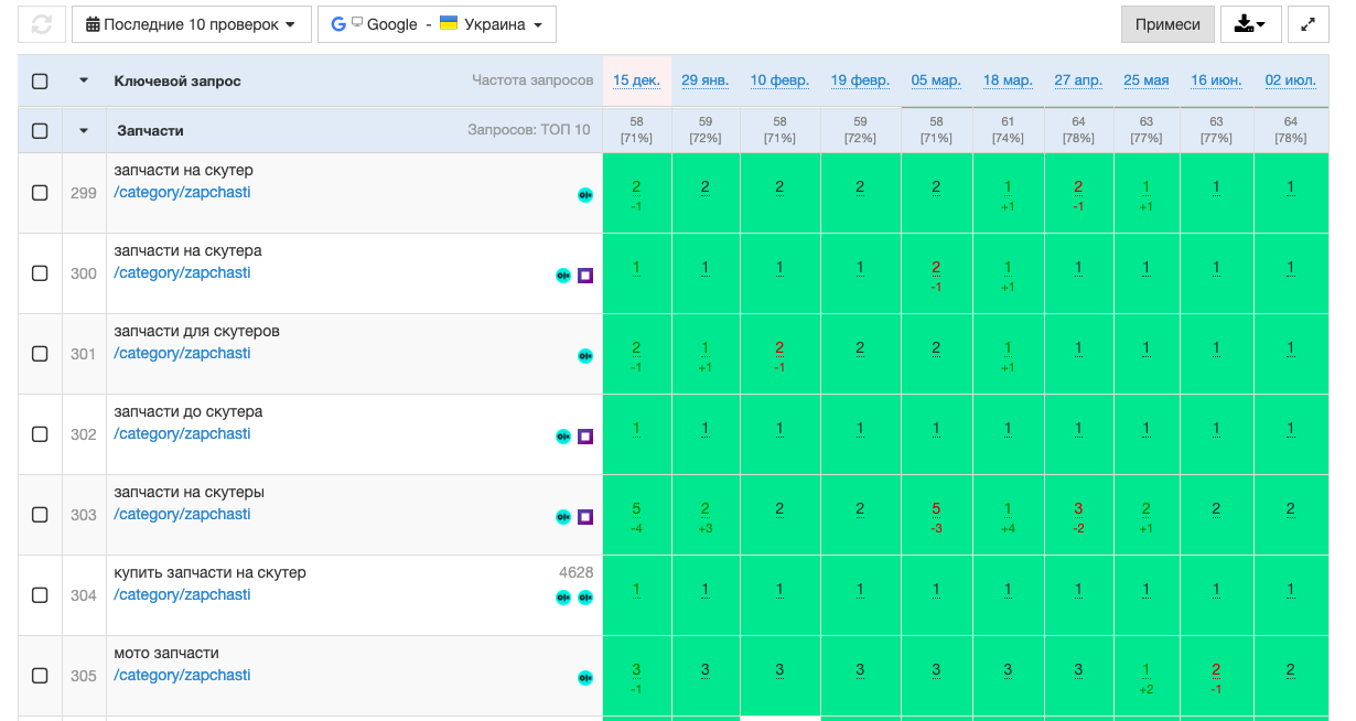 Отслеживайте изменение ранжирования запросов используя мониторинг позиций ключей