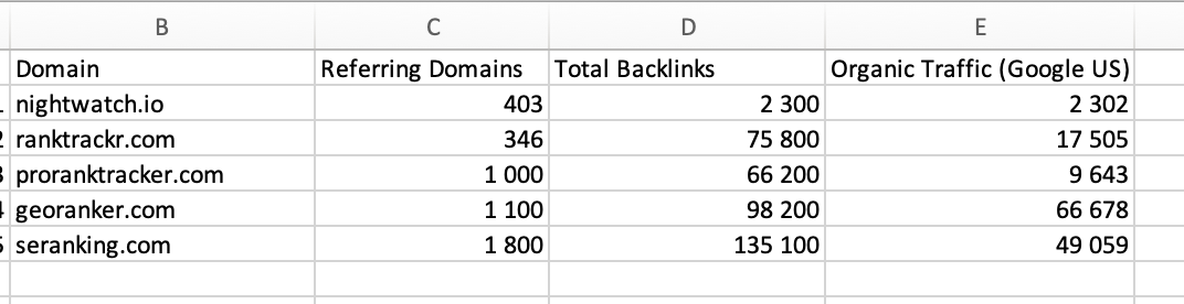 On a screenshot below you can see what domains are competitors of nightwatch.io in Google US: