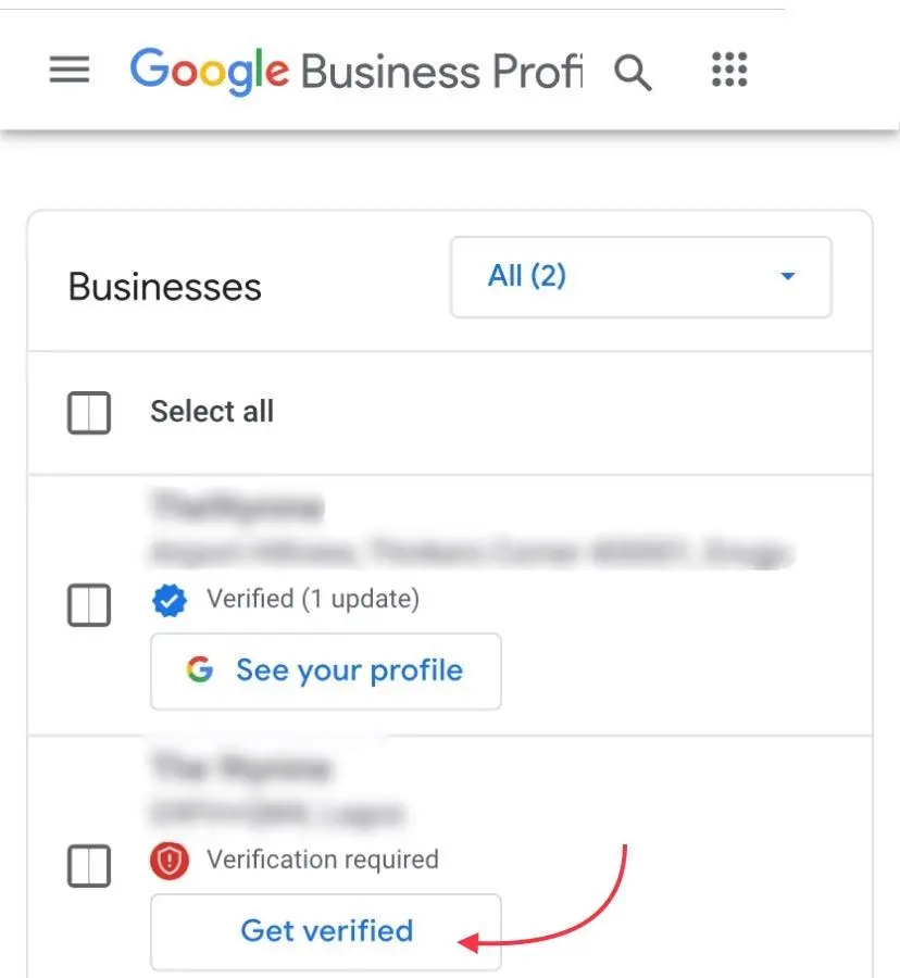 Alternatively, go to your Google business manager and click on the “get verified” button below the business profile you want to verify.