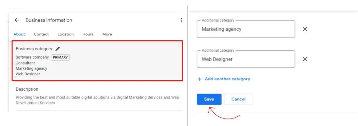 When adding categories, be sure to add only the categories that are closely related to your business, especially if you don’t find the exact match among Google’s suggestions.