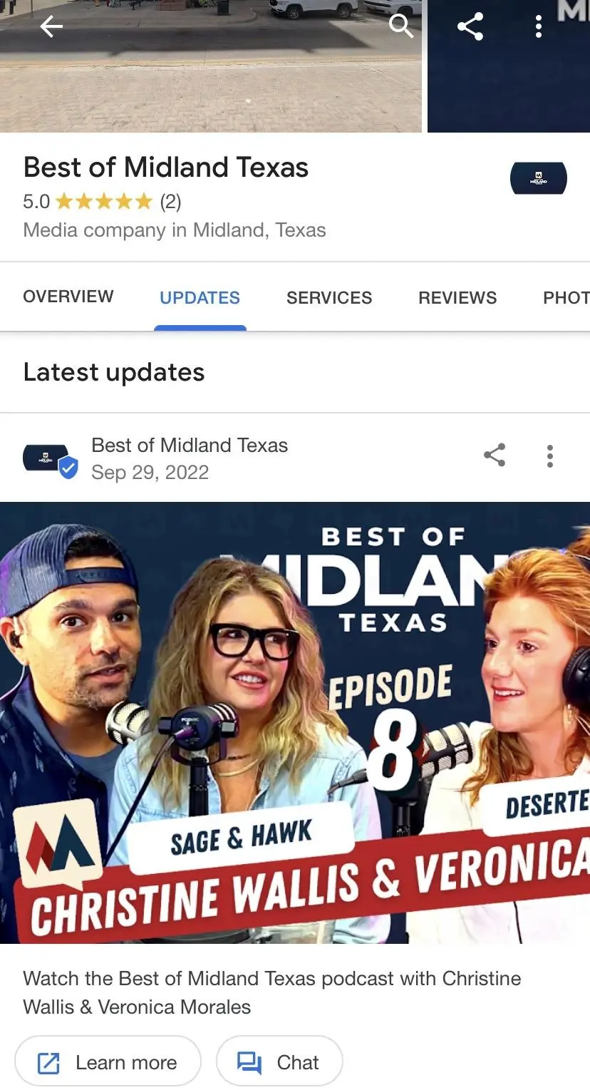 Your Google posts allow you to connect with customers and prospects by sharing regular updates. This works just like a basic social media post. It’s also one way to stay active online. With Google posts, you can add different types of posts like new images and videos about your business. You can also announce new blog posts or share news about offers and business events. Here’s an example from Best of Midland:
