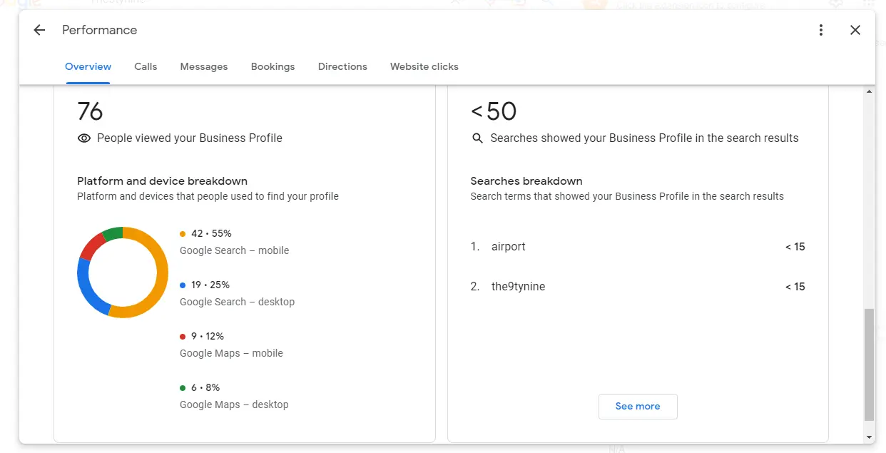 GMB analytics also shows you how much traffic your profile generates for your website. You can see how many people are asking for directions to your business location, placing calls, or scheduling meetings. This is visible on your business dashboard.
