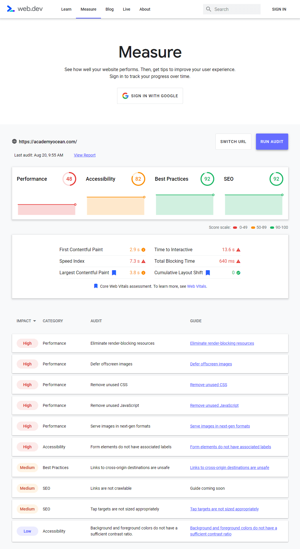 Interestingly, Google doesn't simply measure the loading time (which can also be very relative, taking into account Internet connection speed, location, etc.). To a large extent, it focuses on optimization—or rather on the degree to which a specific list of optimization recommendations was followed.