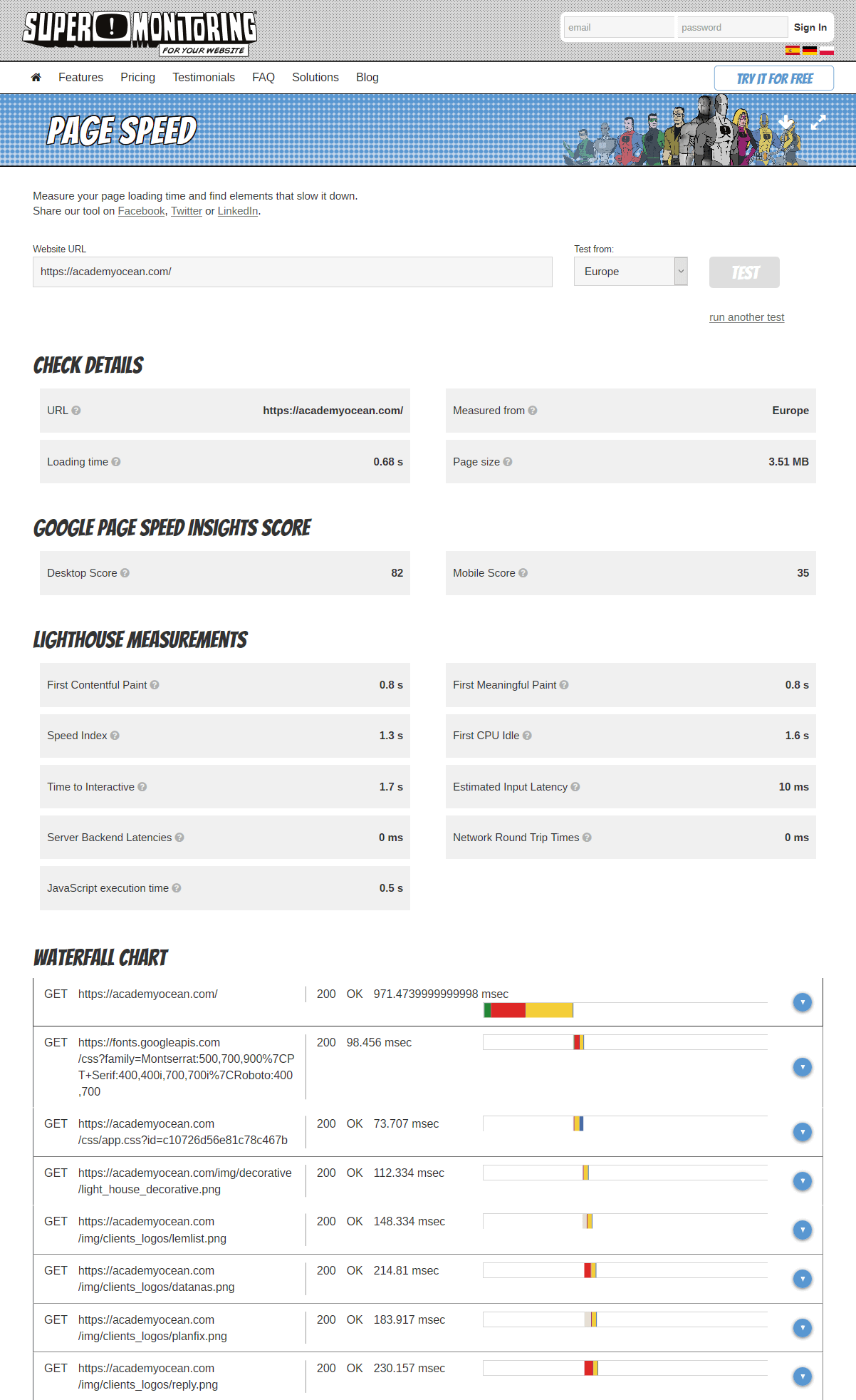 Among the tools described above, speed monitoring is offered by GTmetrix, Pingdom and Super Monitoring.